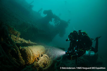 The HMS VANGUARD 100 Survey was conducted between October 2016 and February 2017 under special licence from the Secretary of State for Defence. Remote survey techniques were used to identify the extent of the wreckage and debris field. Specialist divers, including experts in munitions and explosive effects, conducted an underwater survey of the entire site using underwater forensic mapping techniques. The wreck was documented using videography, stills photography and 3D photogrammetry.